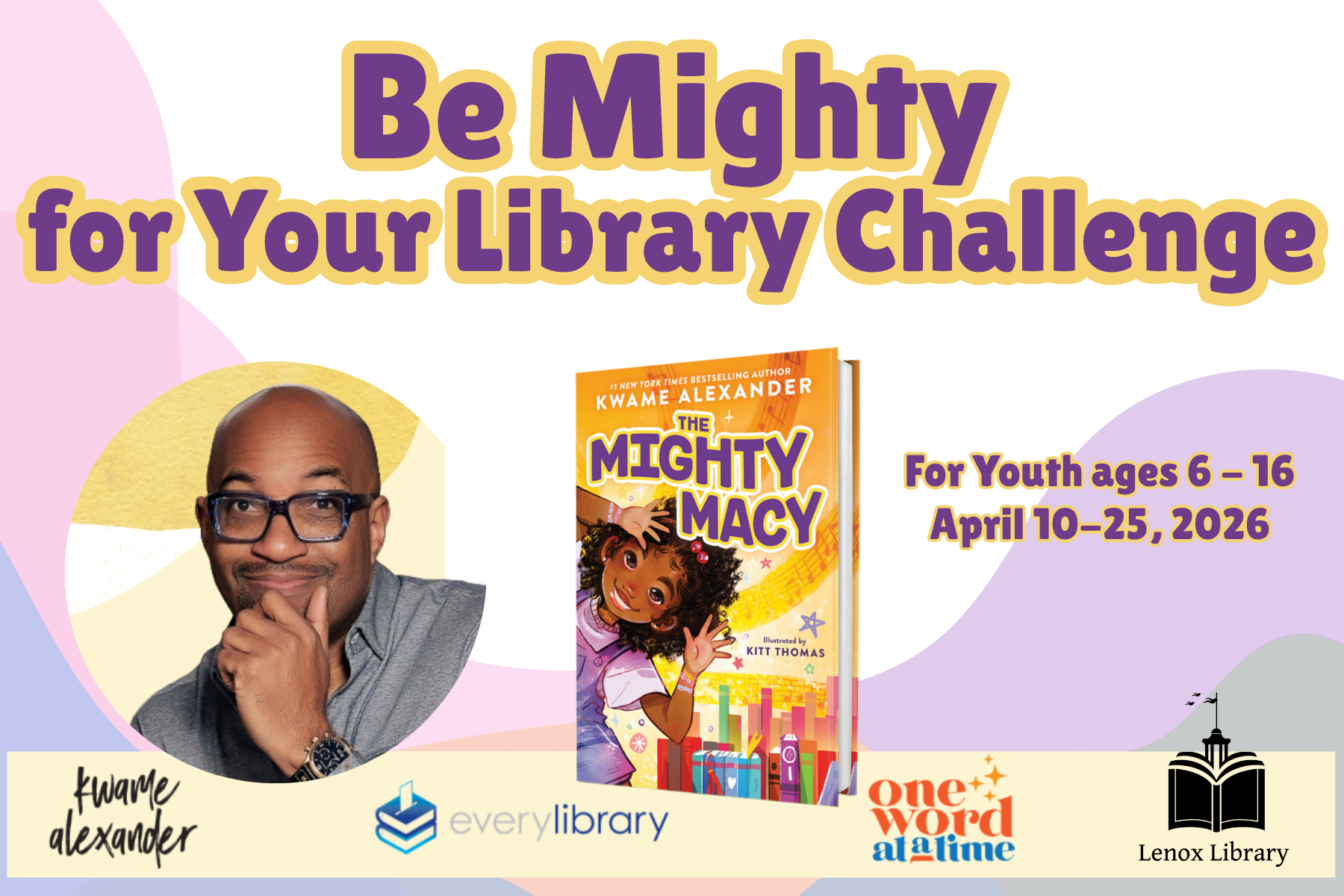 Lenox Library is one of only eight libraries chosen to participate in the “Be Mighty for Your Library Challenge” hosted by author Kwame Alexander (The Mighty Macy) and EveryLibrary! What is the challenge? Three [...]